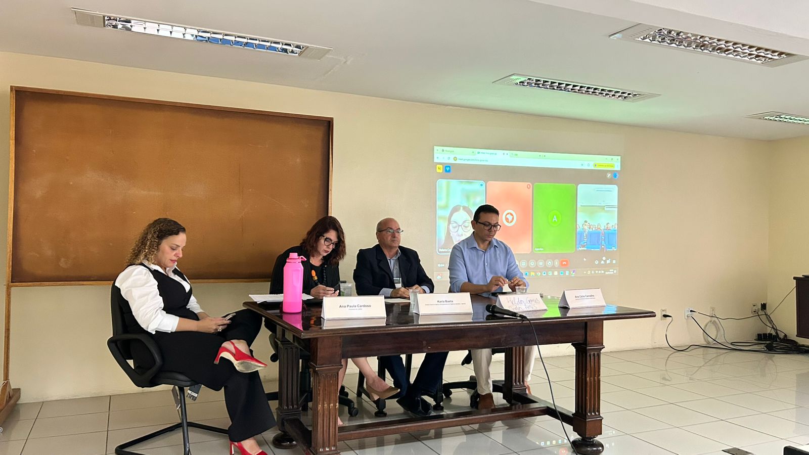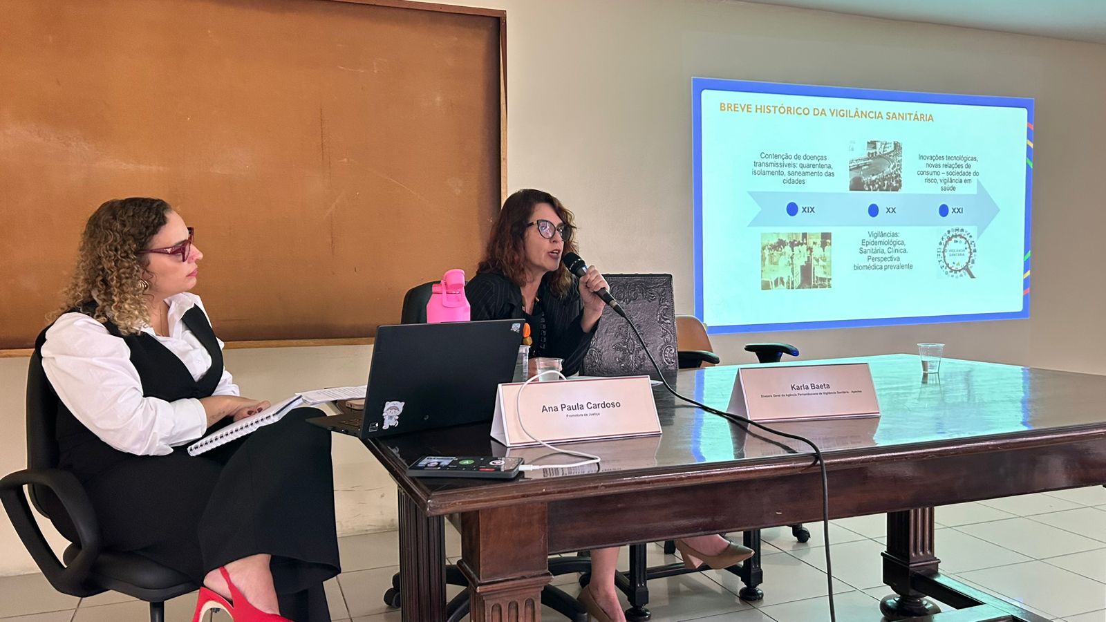 A mesa de abertura foi composta pela Promotora de Justiça e Coordenadora do CAO Saúde, Helena Capela; pela Diretora Geral da Apevisa, Karla Baeta; pela Promotora de Justiça, Ana Paula Cardoso; pelo Diretor da Agência Municipal de Vigilância Sanitária de Petrolina, Hélder Gomes; e pelo representante da Gerência Regional de Saúde (VIII Geres), Avelar Batista dos Santos.